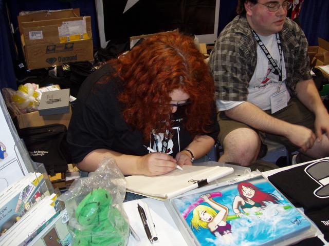 Aeire sketches us a picture of Kestrel from Queen of Wands. San Diego, CA 24 July 2004, 11:19